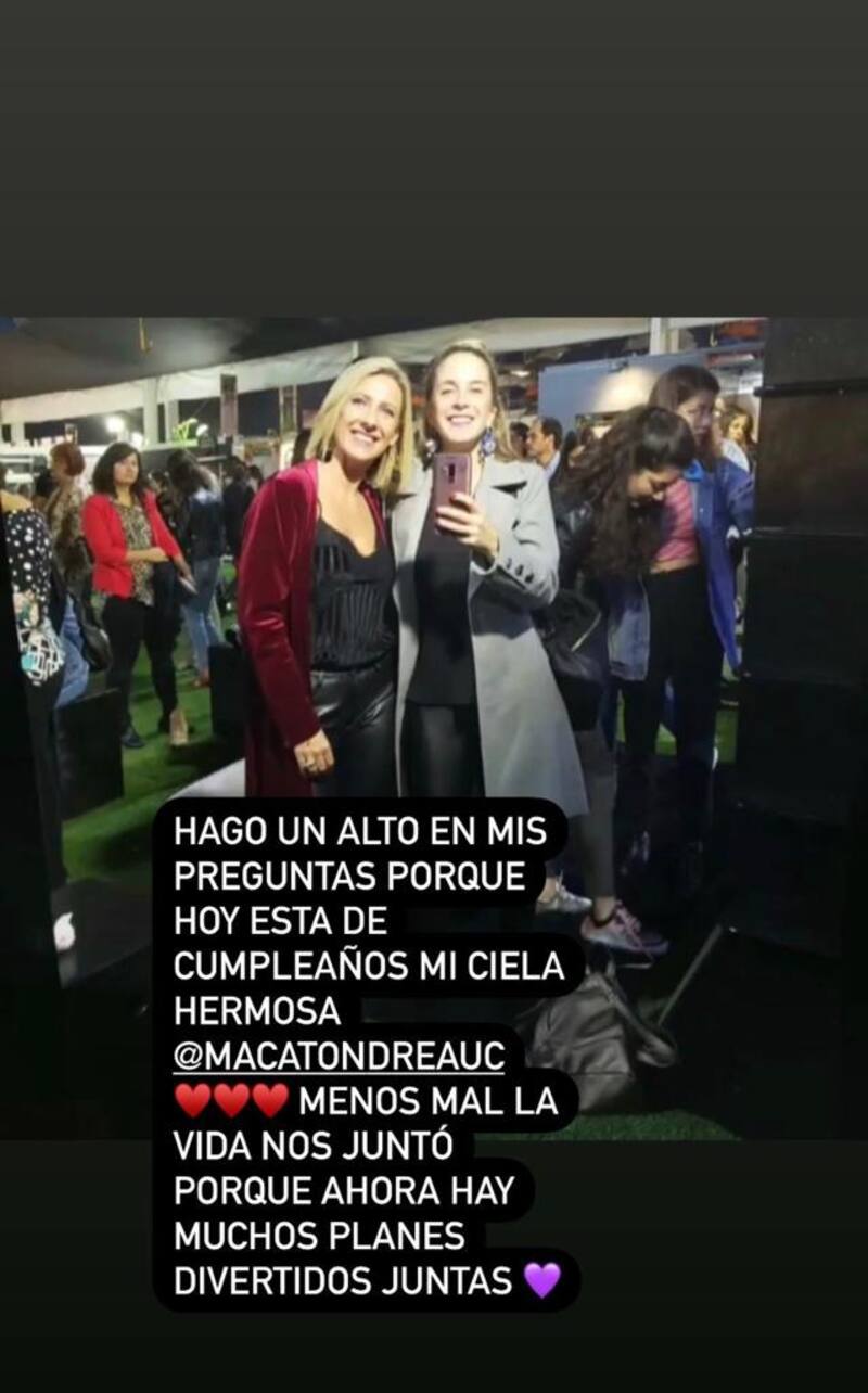 "Hago un alto en mis preguntas porque hoy está de cumpleaños mi ciela hermosa @macatondreauc. Menos mal la vida nos juntó porque ahora hay muchos planes divertidos juntas", indicó la comediante.