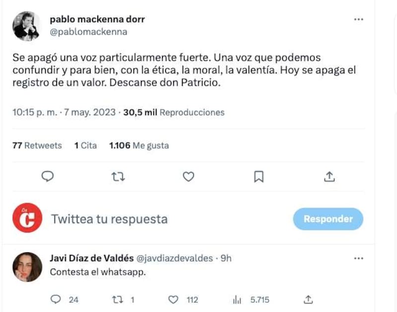 “Se apagó una voz particularmente fuerte. Una voz que podemos confundir y para bien, con la ética, la moral, la valentía. Hoy se apaga el registro de un valor. Descanse don Patricio”, escribió el ex CQC a través de Twitter.