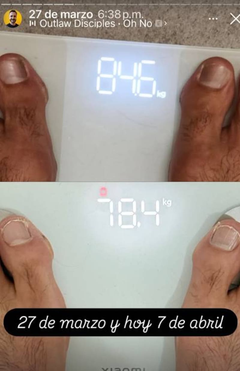 Primero, a través de su cuenta de Instagram subió una foto con información sobre su peso. En la primera, del 27 de marzo, estaba en 84.6 kilos.