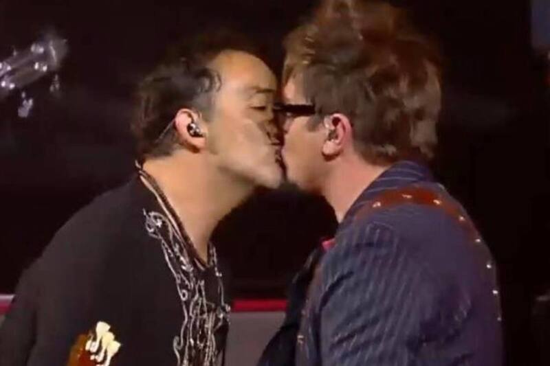 Integrantes de la banda, sin previo aviso, se dieron un beso en la Quinta Vergara.