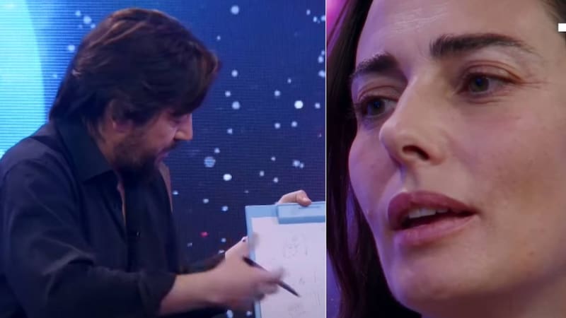 Siempre observando las letras que se escribieron en una pizarra, Santi planteó que “hay un promesa que se cumplió, una promesa pendiente que la has cumplido a medias. Y aquí hay flores, un probable mensaje de cariño”