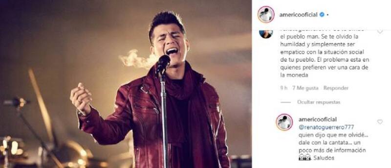 Pese a la ola de críticas recibidas, el artista intentó dar vuelta la página y hacer lo que más le gusta: cantar. Antes de ofrecer un concierto en Constitución, Américo publicó una imagen (sobre el escenario) en su cuenta de Instagram con la siguiente leyenda: "lo que debo hacer... y lo que debo ser. Feliz!".