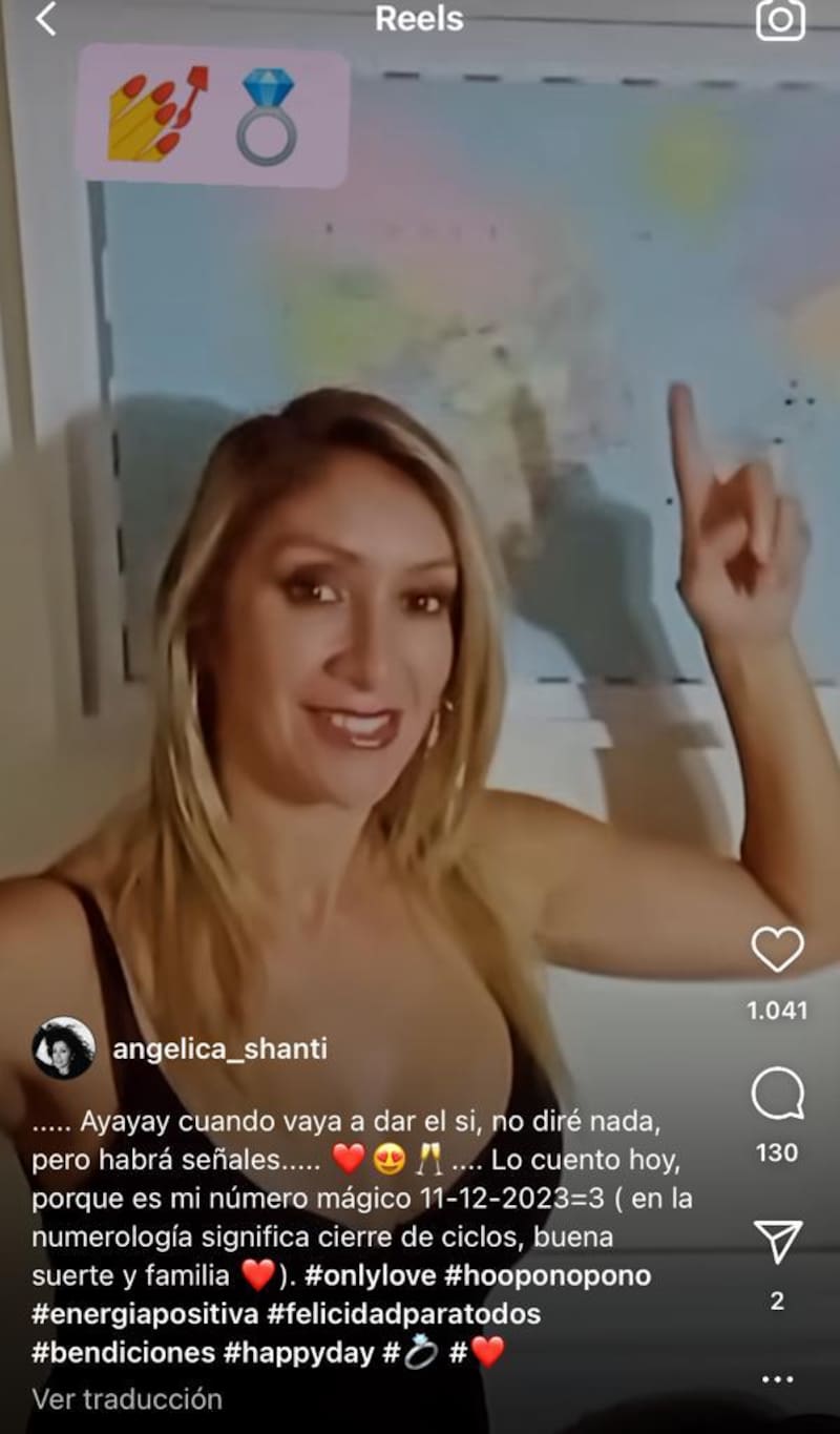 “Ayayay cuando vaya a dar el sí, no diré nada, pero habrá señales...Lo cuento hoy, porque es mi número mágico 11-12-2023=3 (en la numerología significa cierre de ciclos, buena suerte y familia”, comenzó diciendo.