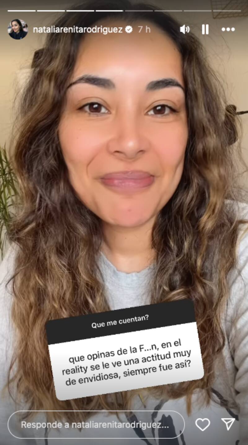 “¿Qué opinas de F...n? En el reality se le ve una actitud envidiosa, ¿siempre fue así?”, fue la pregunta que le hizo un cibernauta a Natalia.