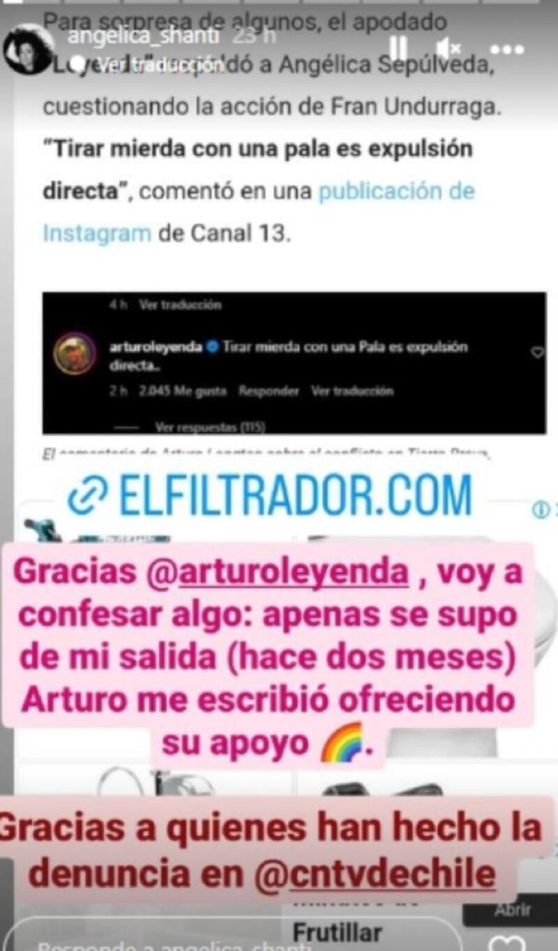 Ante el hecho es que Angélica comenzó a compartir varias stories en su cuenta de Instagram, donde llamaba a la producción a mostrar todo el conflicto sin edición, donde acusó a Fran Undurraga de “maltratar animales” y a Botota Fox de “cometer violencia de género”.