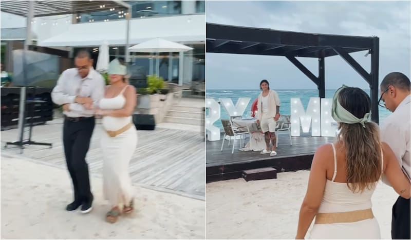 Sobre ese hito, el cual habría tenido lugar en tierras caribeñas el pasado 26 de junio, a través de un video, Sosa dejó ver una secuencia en que aparece ella caminando guiada con los ojos vendados mientras el galán en cuestión la esperaba en una plataforma que detrás tenía una grandes letras que decían: “MARRY ME”.