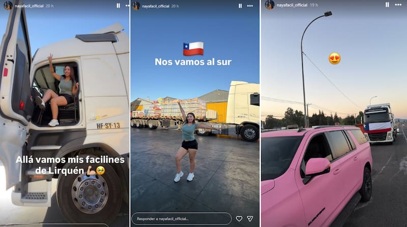 La influencer fue mostrando su viaje a través de la Ruta 5 Sur y el complejo ingreso a la zona afectada, donde fue escoltada por Carabineros.