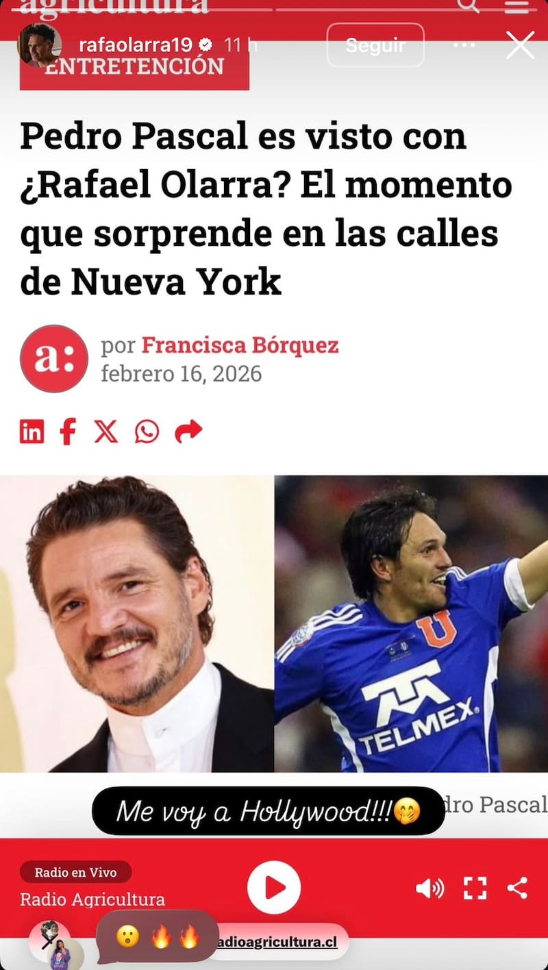 Por Consuelo CalderónAsí reaccionó Rafael Olarra tras la insólita confusión de medio estadounidense que lo vinculó a Pedro Pascal: “Me voy a Hollywood”