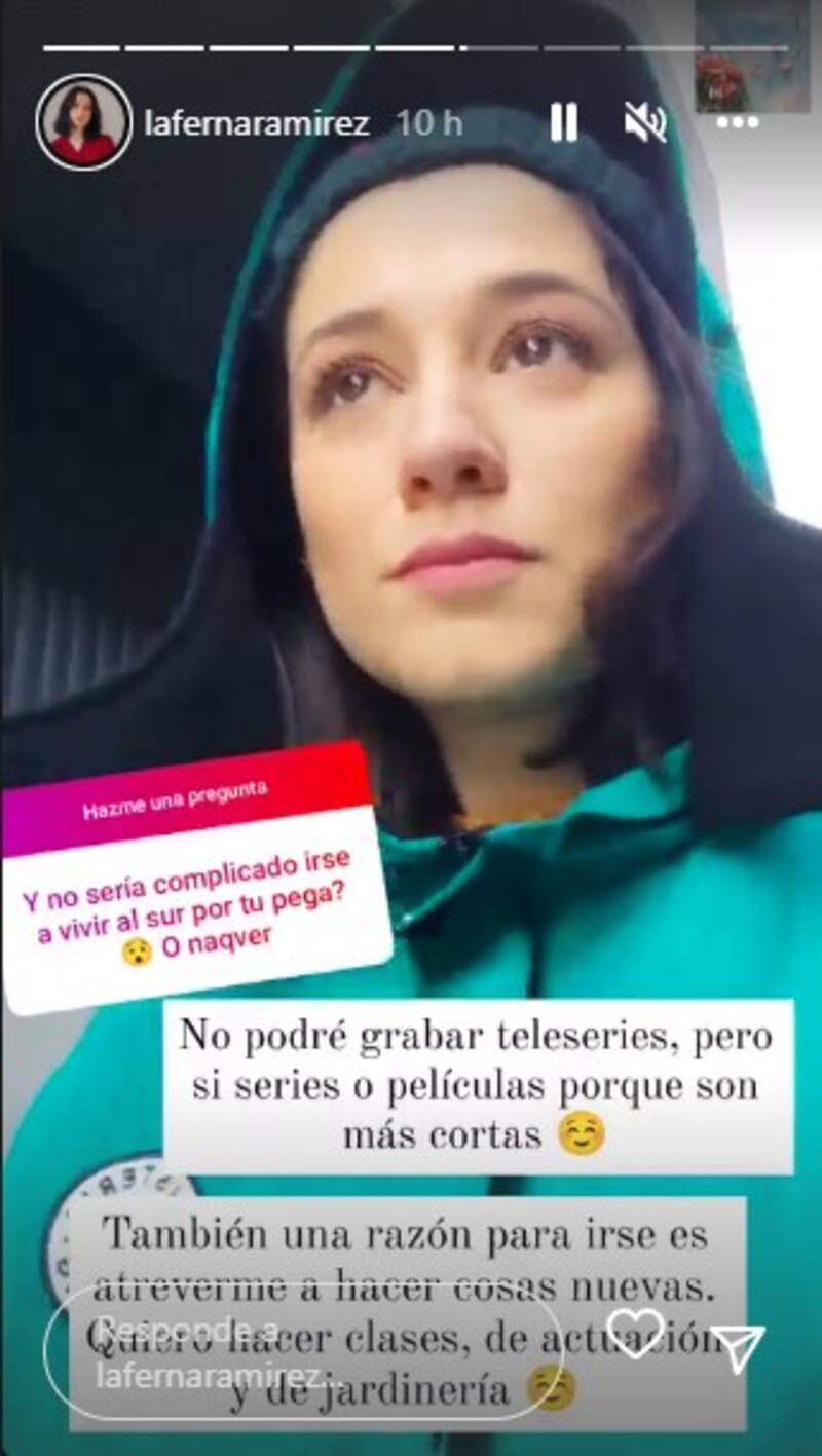 “No podré grabar teleseries pero si series o películas porque son más cortas. También una razón para irse es atreverme a hacer cosas nuevas. Quiero hacer clases, de actuación y de jardinería”, añadió sorprendiendo a sus seguidores.