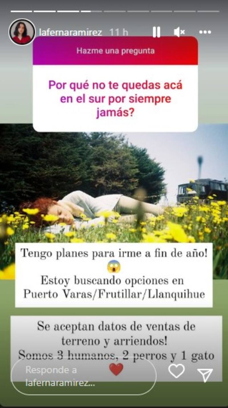 A través de sus historias de Instagram, la actriz de “La Ley de Baltazar” resolvió diversas dudas de sus seguidores, donde un usuario le preguntó si tenía en sus planes la idea de dejar la capital para mudarse al sur.