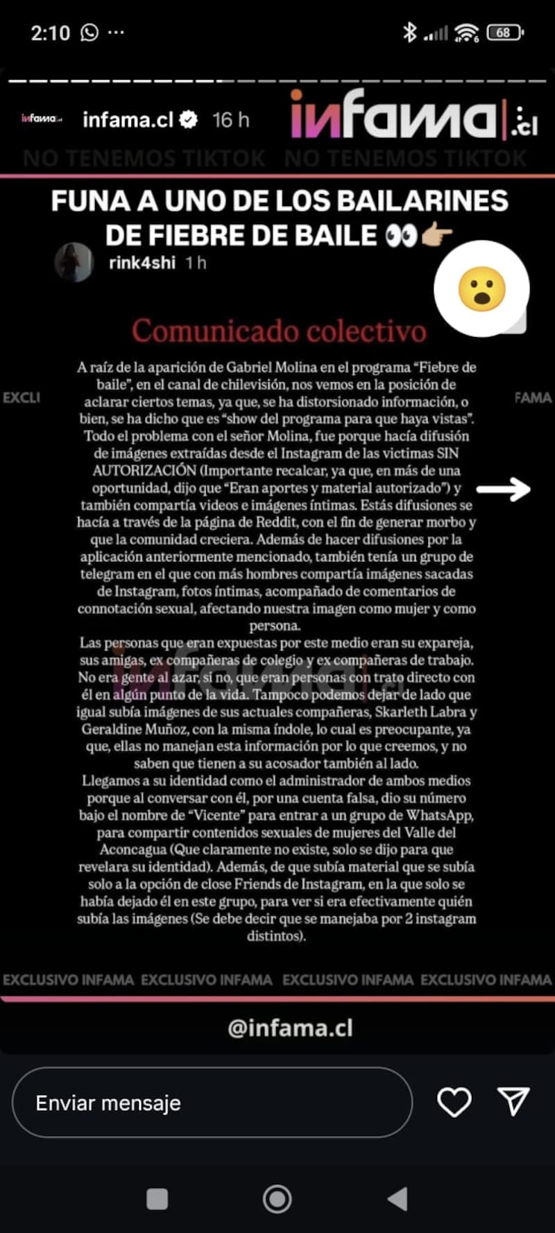 Por Bernardita VillaBailarín de “Fiebre de Baile” es funado por difundir material íntimo de mujeres: duró un día en el programa