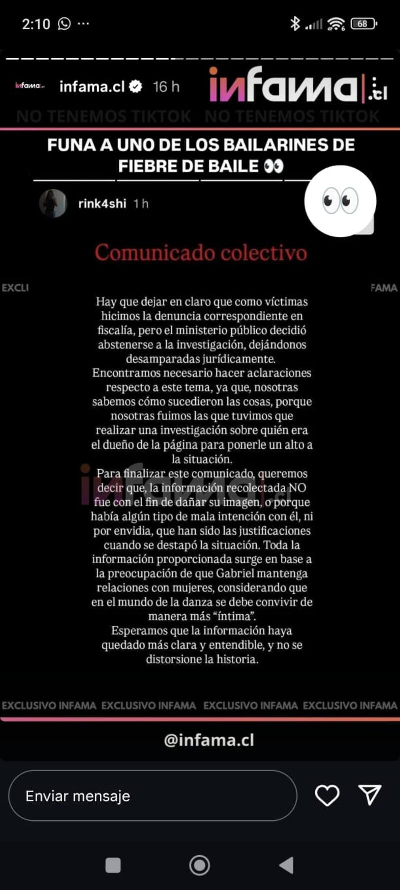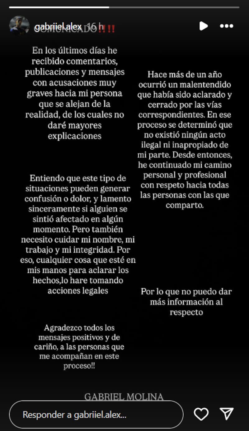 “Entiendo que este tipo de situaciones pueden generar confusión o dolor, y lo lamento sinceramente si alguien se sintió afectado en algún momento. Pero también necesito cuidar mi nombre, mi trabajo y mi integridad. Por eso, cualquier cosa que esté en mis manos para aclarar los hechos, lo haré tomando acciones legales”, dijo.