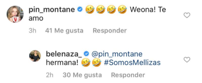 La misma Pin reaccionó a la imagen de Belén con el siguiente comentario: