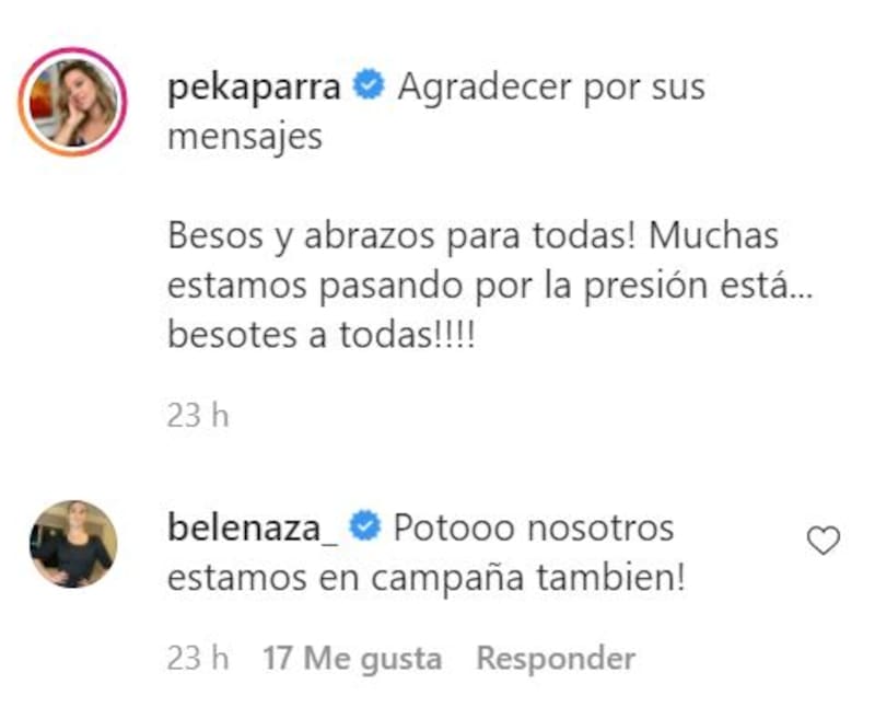 Por lo mismo, recibió mucho apoyo y buenas vibras por parte de sus seguidores en los comentarios. Incluso, se pudo ver un mensaje de Belén Mora, quien también respondió al post.