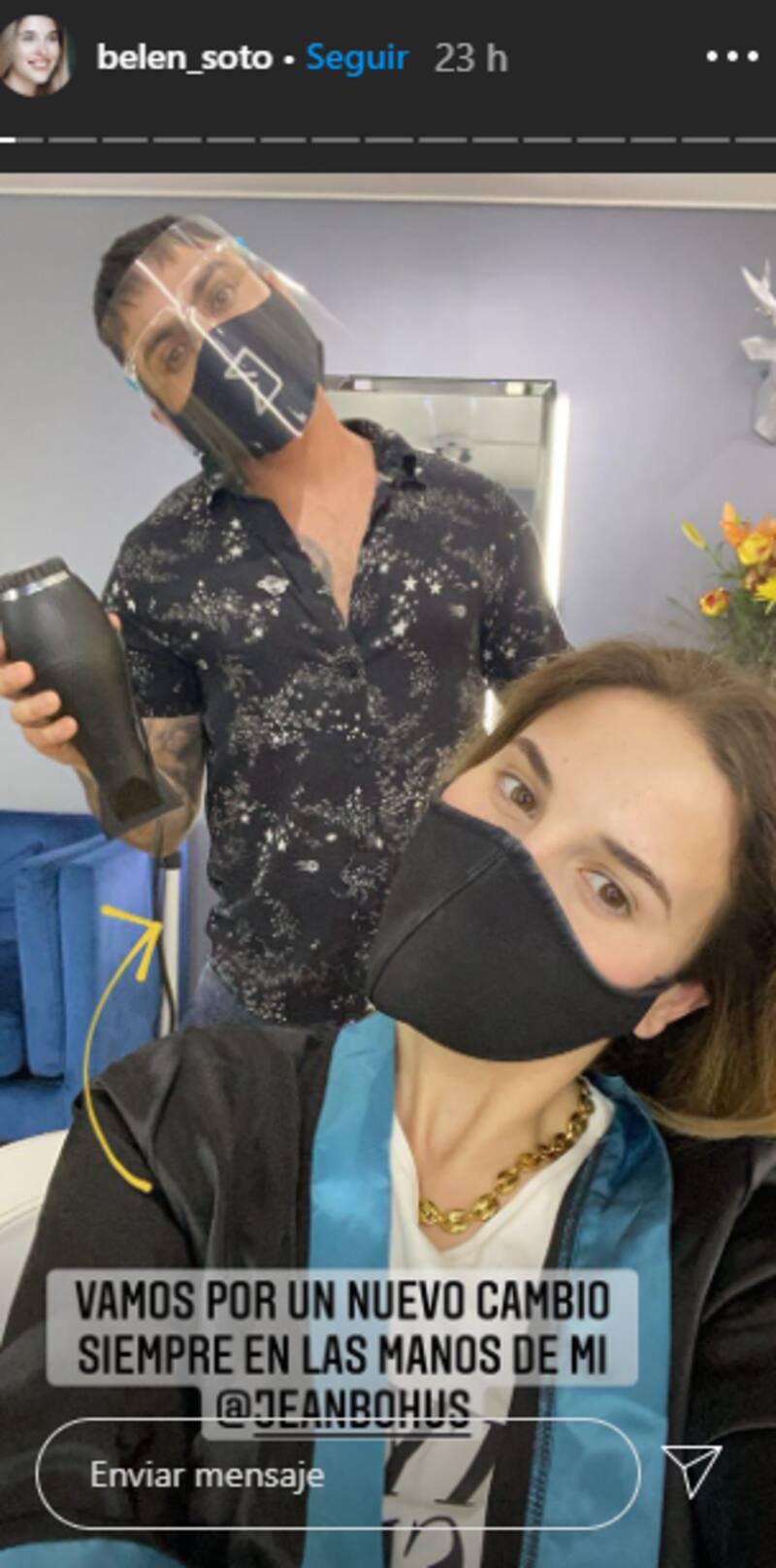 "Vamos por un nuevo cambio. Siempre en las manos de mi Jean Bohus", escribió Belén en su primera historia, antes de comenzar su renovación.