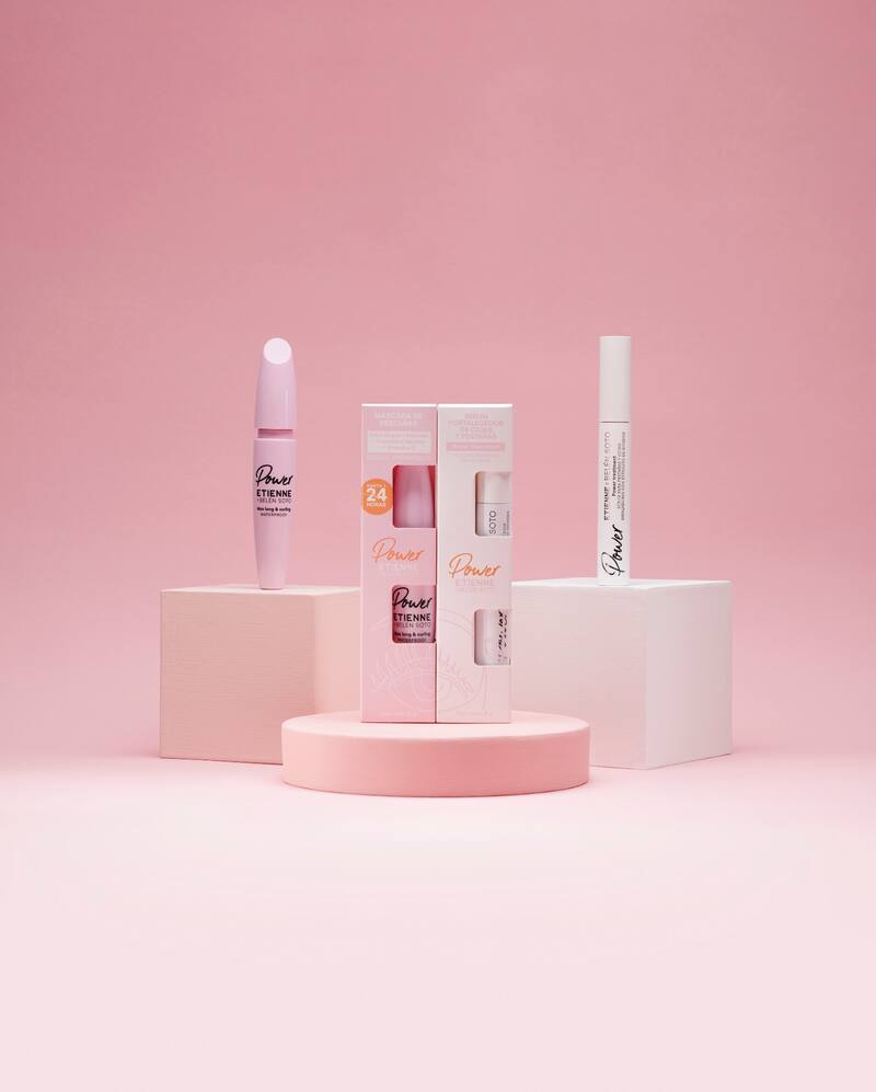 La línea de maquillaje "Power" consta de un sérum de uso nocturno -el cual contiene un 1% de ginseng y ayuda a fortalecer el vello de las pestañas y de las cejas- y una máscara de pestañas elaborado con una fórmula enriquecida con Vitamina E.