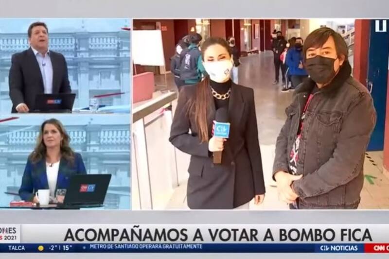 El comediante Bombo Fica acudió a su local de votación bromeando sobre su voto y partido luego de que CHV lo acompañara a sufragar.
