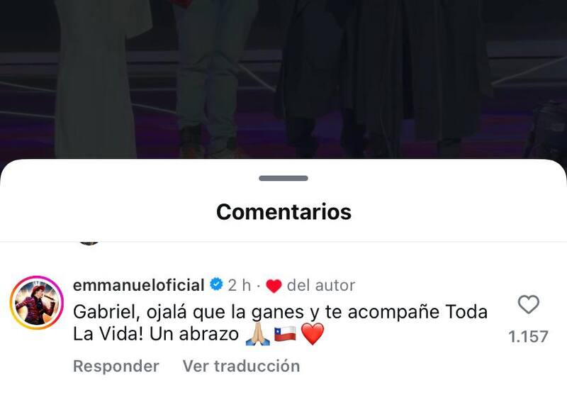 “Gabriel, ojalá que la ganes y te acompañe Toda La Vida! Un abrazo”, escribió el intérprete en los comentarios, haciendo alusión a otra de sus memorables canciones.