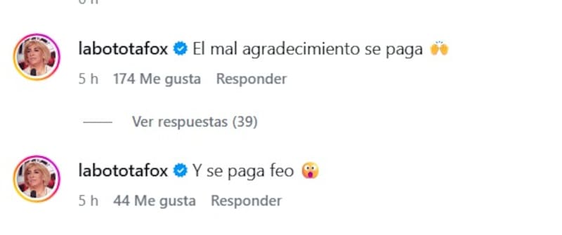 “El mal agradecimiento se paga”, comenzó escribiendo para agregar que “y se paga feo”. No obstante, cibernautas la criticaron en su mayoría por sus dichos.