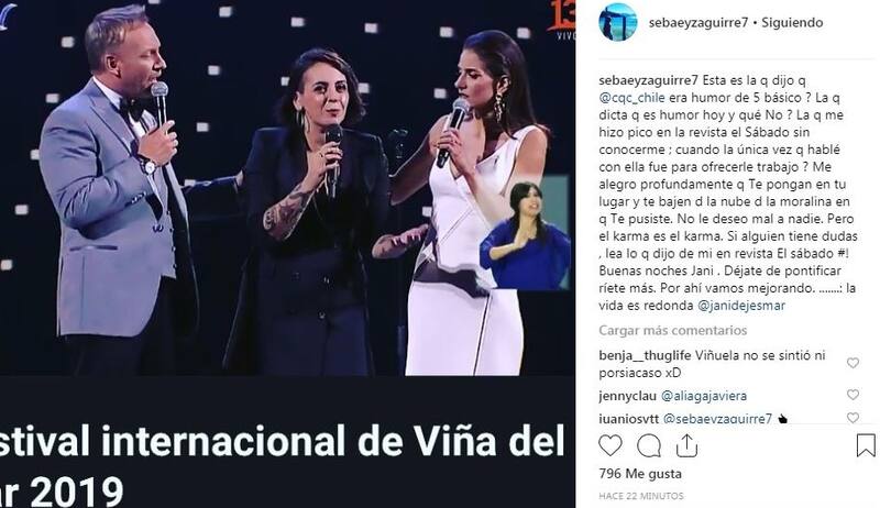 "¿Está es la que dijo que CQC era humor de quinto básico? (...) Me alegro profundamente que te pongan en tu lugar y te bajen de la nube de la moralina en que te pusiste. No le deseo mal a nadie, pero el karma es karma. Déjate de pontificar, ríete más. La vida es redonda", lanzó el notero a través de instagram.