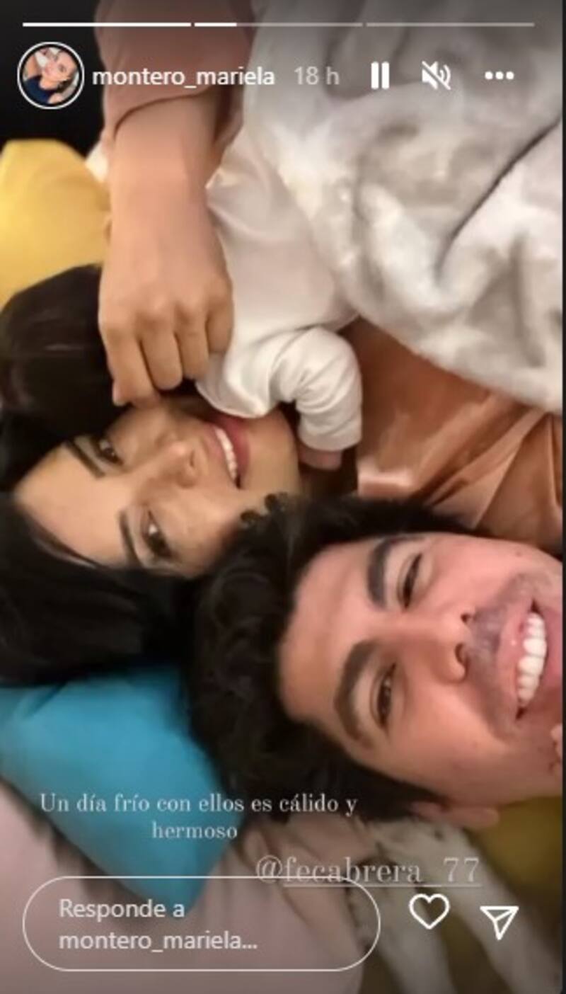 “Un día frío con ellos es cálido y hermoso @fecabrera_77″, detalló posando acostada junto a su pareja y Lautaro, su pequeño hijo.