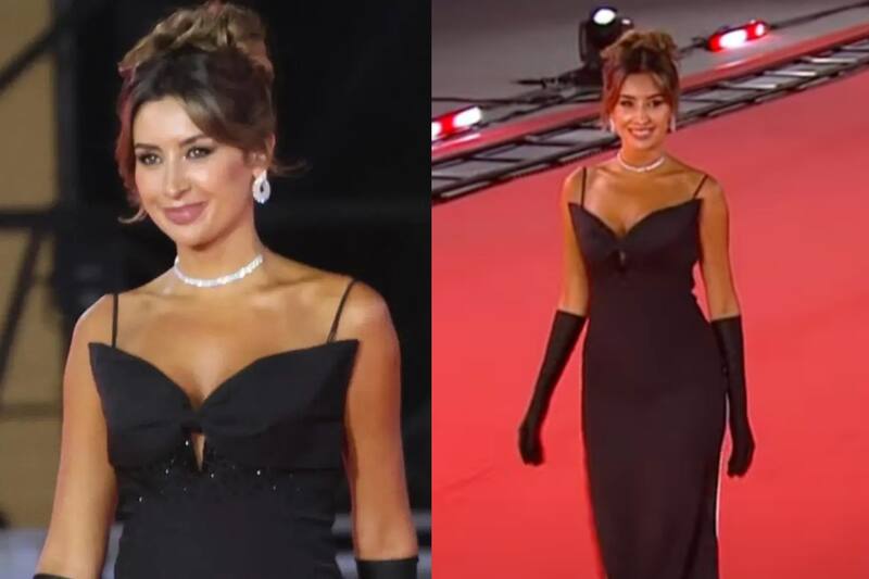 Lució un vestido en negro con detalles blanco en los costados, y un pronunciado escote.