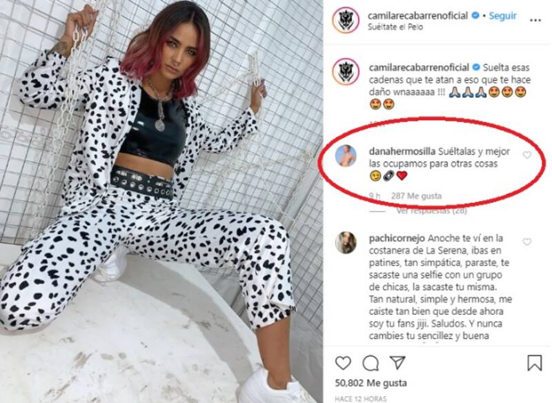 Ahora, Camila subió a la plataforma virtual una fotografía donde aparece en una sala donde las paredes están repletas de cadenas, las cuales son tomadas por Camila. La foto pasó los 52 mil likes. Además, la Cami recibió un peculiar comentario de su novia, Dana Hermosilla.