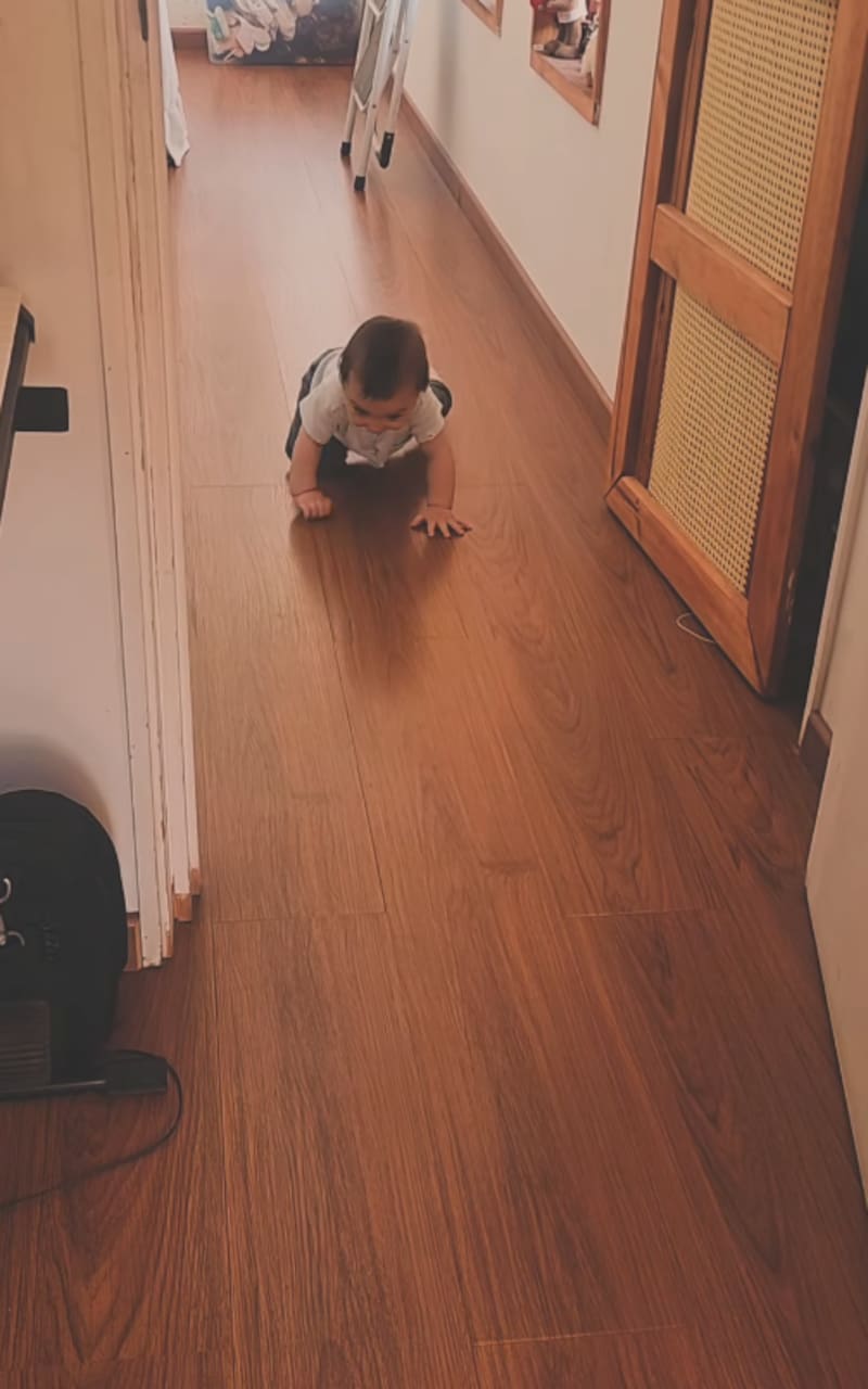 “Y bueno, realmente está muy rico haciendo un sinfín de soniditos de guagua probando su voz, pero lo más cómico es cómo gatea y se para con esos tutitos gordos”, relató.