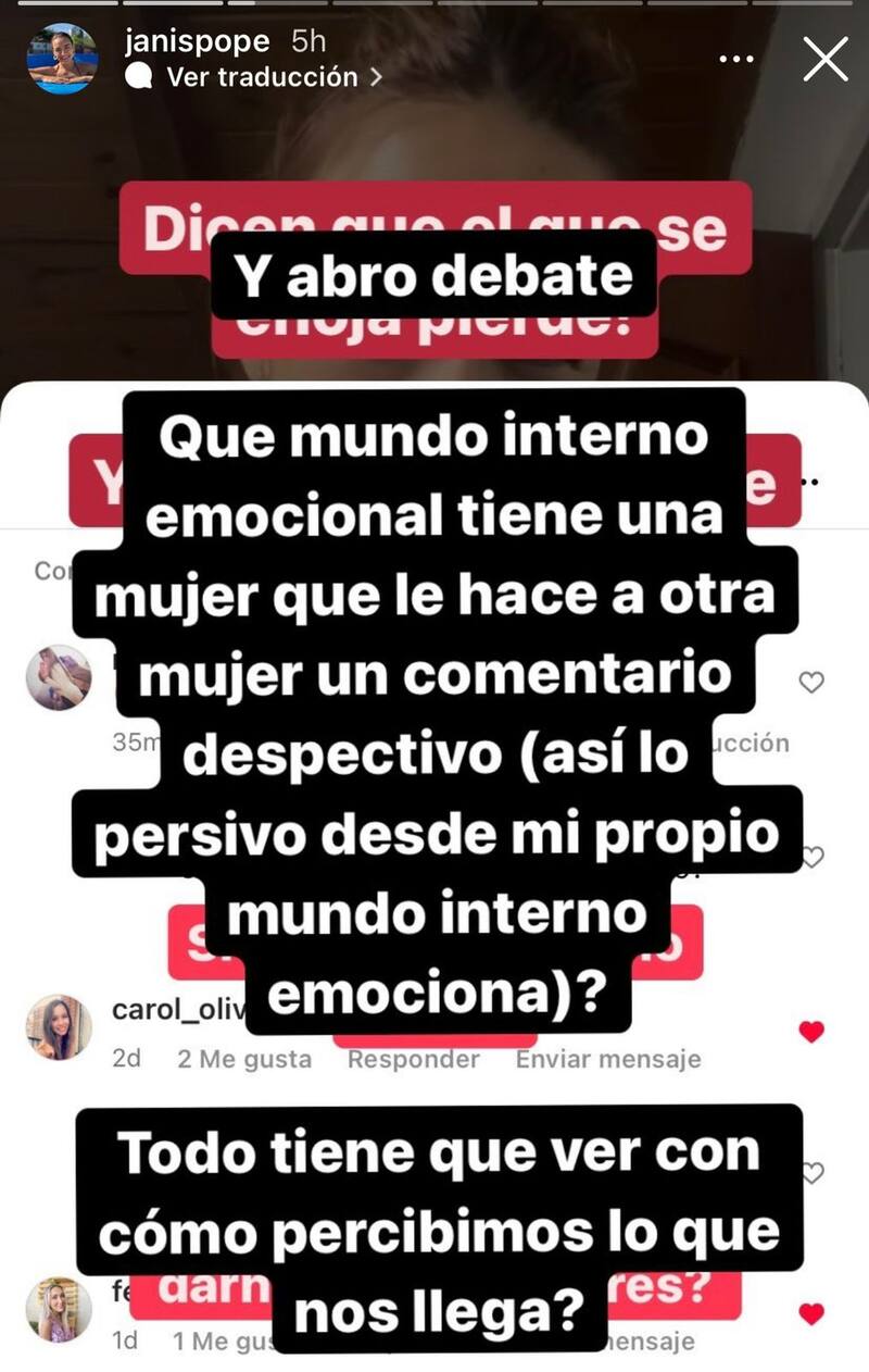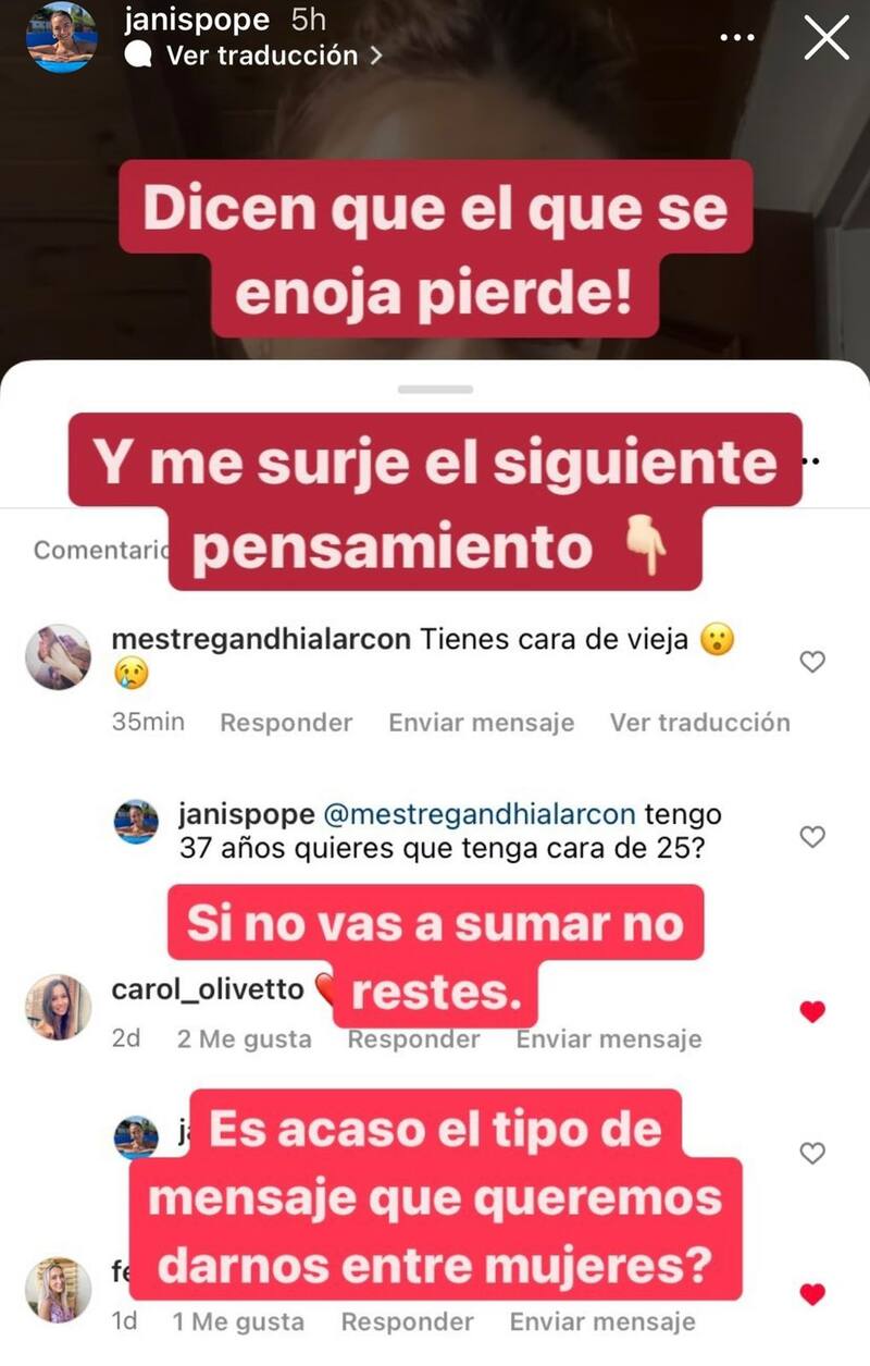 Por Juan Carlos Muñoz“Cara de vieja”: Janis Pope “frenó en seco” a usuaria tras recibir ofensivo comentario