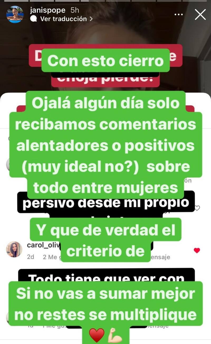 Por lo mismo, Janis no quedó indiferente y tomó la decisión de publicar el comentario. Además, se defendió a través de una profunda reflexión.