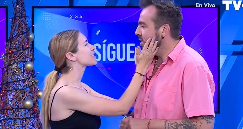 Fue entonces que recibió una especial y sorpresiva visita en el estudio mientras estaban en vivo: llegó su esposa Carla Jara a saludarlo.