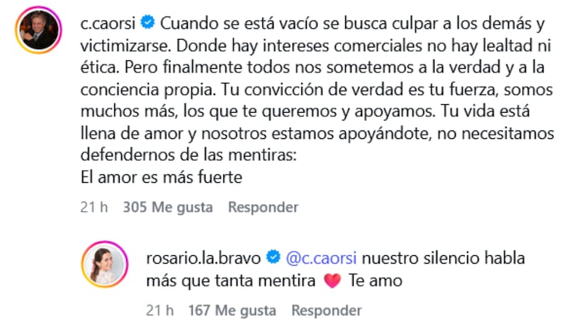 En tanto, ella le contestó: “Nuestro silencio habla más que tanta mentir", y agregó: “Te amo”.