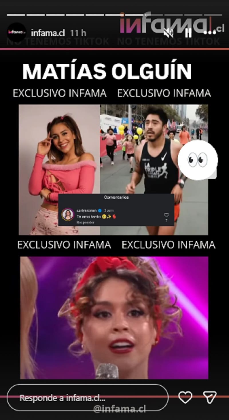No obstante, el portal Infama reveló quién sería la nueva pareja de Carlyn Romero. Según publicaron en redes sociales, se trataría de Matías Olguín, periodista que hasta hace poco trabajaba en Canal 13.