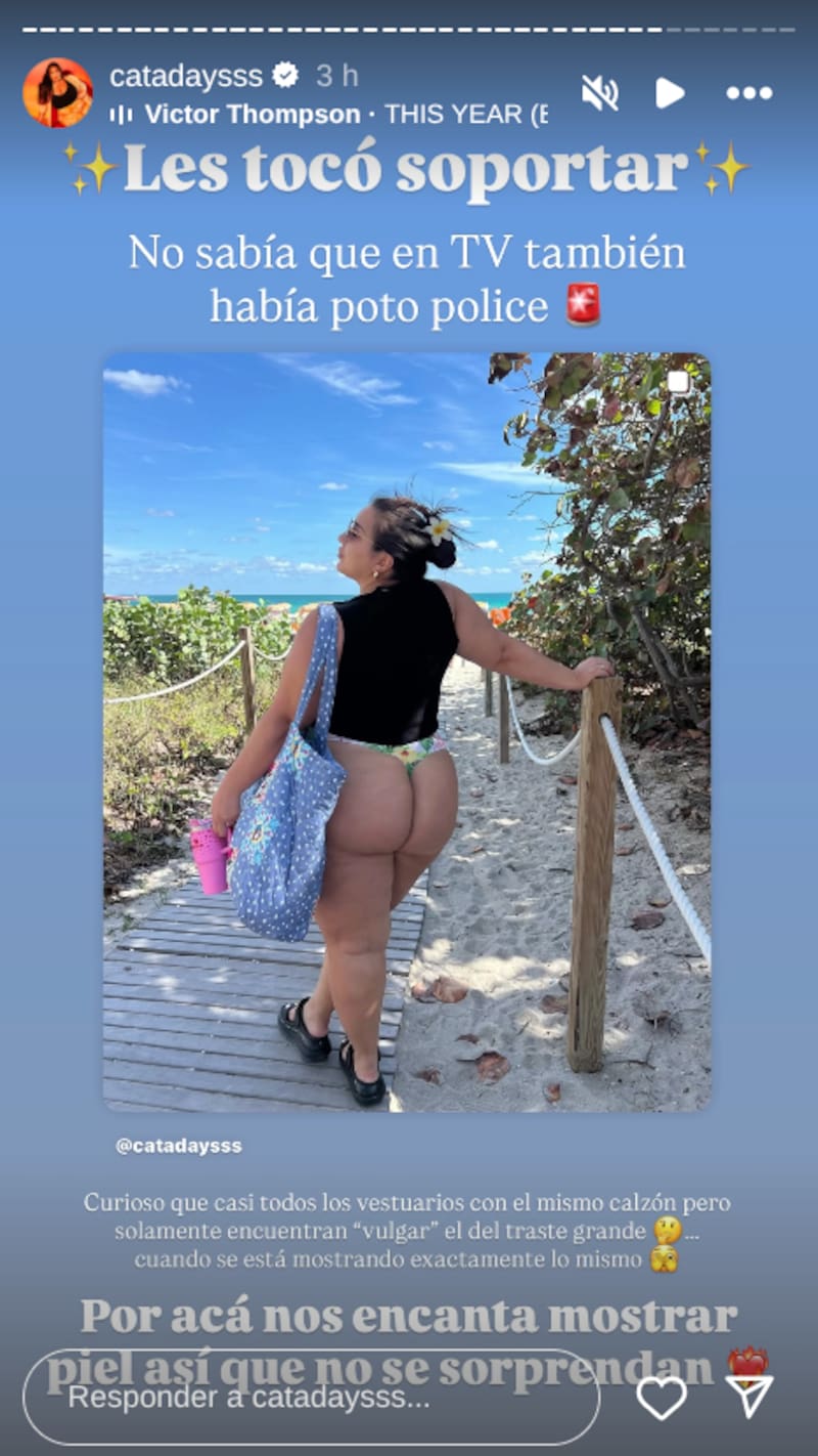 Por Bernardita VillaCata Days responde con provocadora foto a quienes critican su cuerpo y el vestuario de Fiebre de Baile: “No sabía que en TV había también poto police“