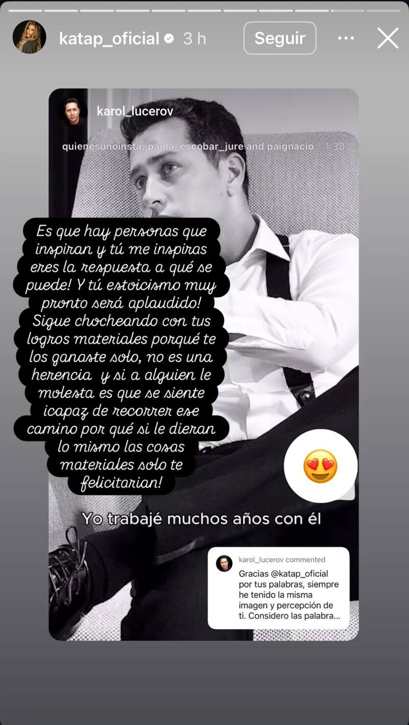 A través de sus stories de Instagram, Karol respondió y agradeció los dichos de Catalina.