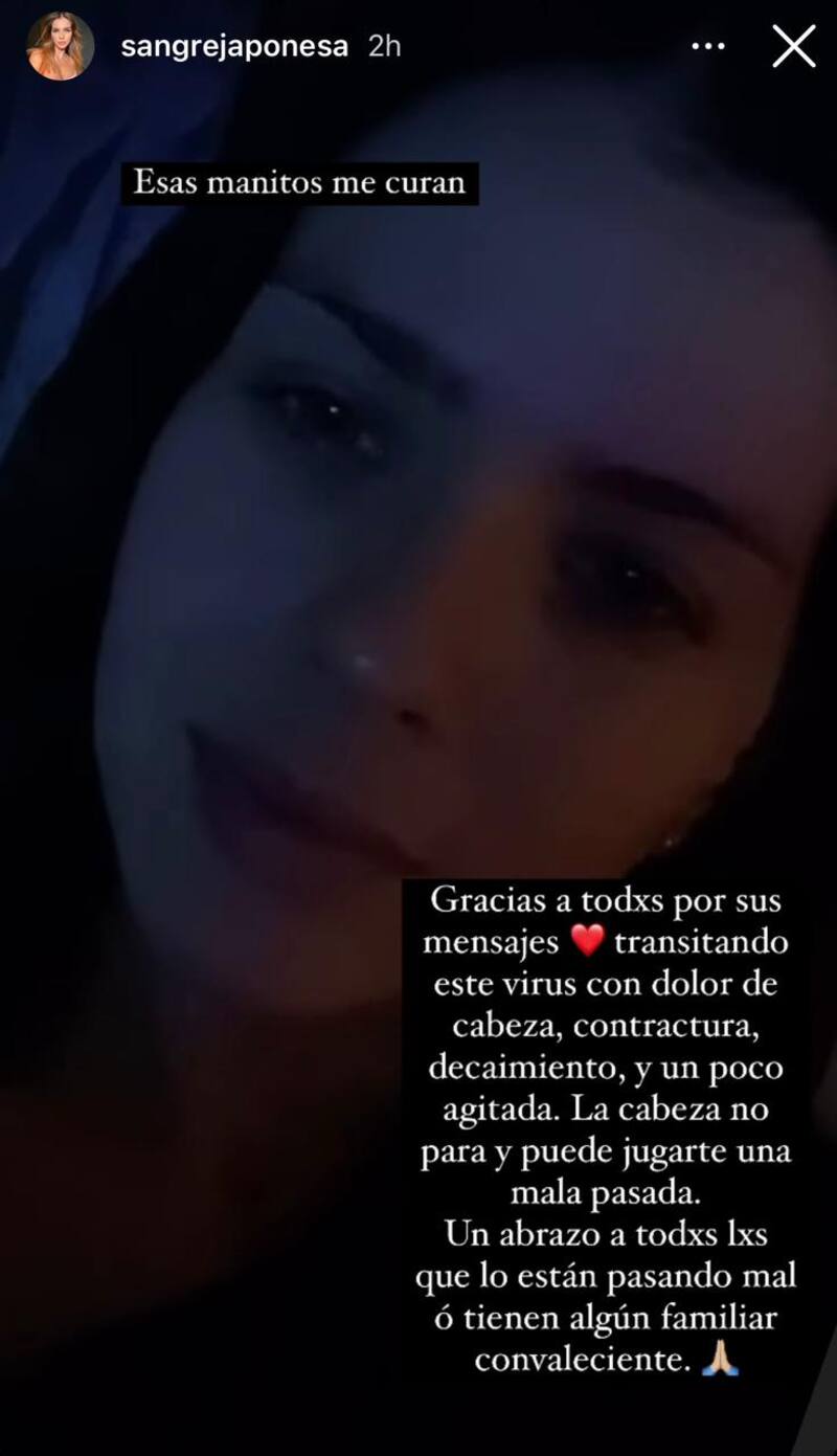 "Transitando este virus con dolor de cabeza, decaimiento y un poco agitada. La cabeza no para y puede jugarte una mala pasada", escribió en la red social.