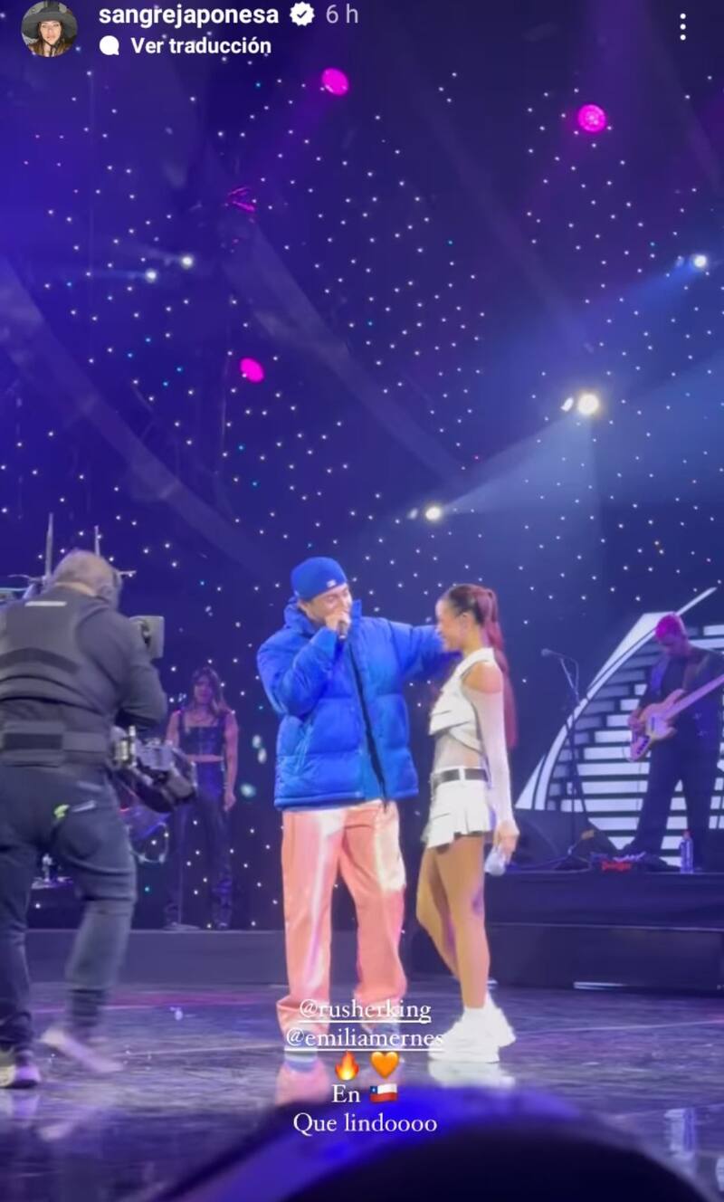 Es más, durante el show de Emilia, la actriz se encontraba de pie, en primera fila, apoyando a su pololo. De hecho, compartió una foto de su Instagram con el momento en que él se subió al escenario. “Qué lindo”, expresó ella.