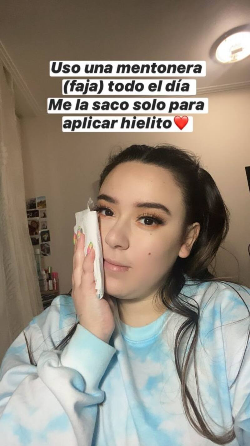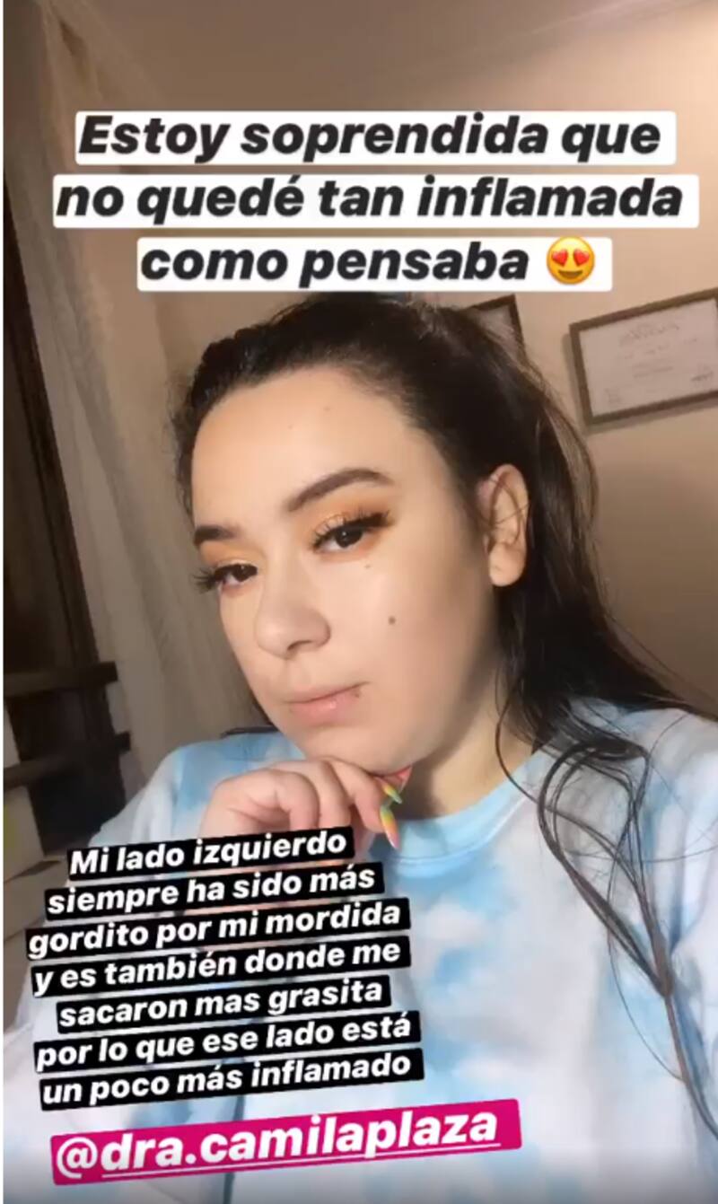"Estoy sorprendida que no quedé tan inflamada como pensaba. Mi lado izquierdo siempre ha sido más gordito por mi mordida y es también donde me sacaron más grasita, por lo que ese lado está más inflamado", señaló en uno de los videos.