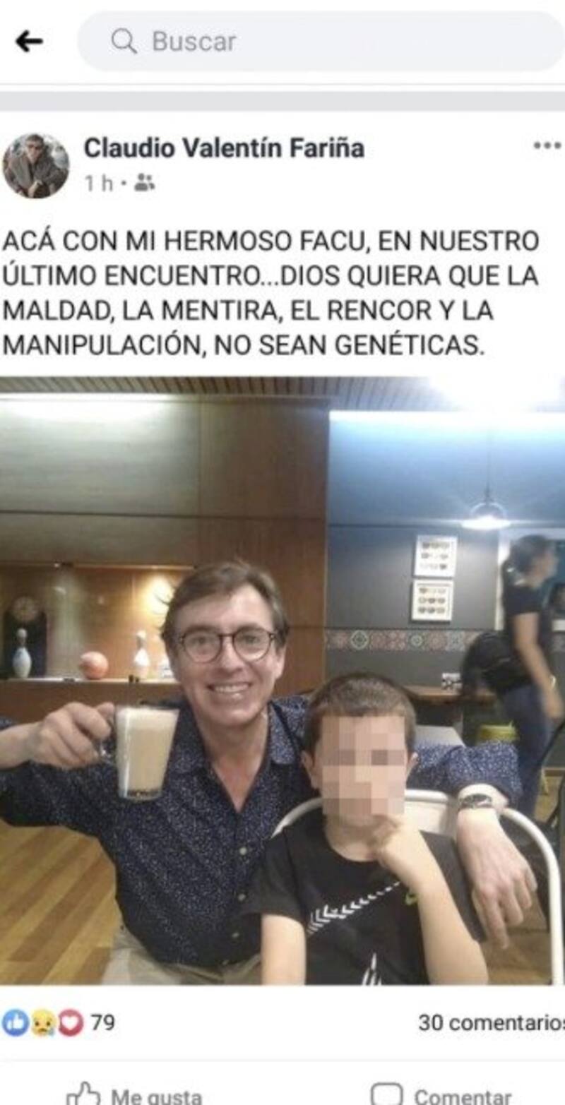 "Acá con mi hermoso (nombre del menor), en nuestro último encuentro… Dios quiera que la maldad, la mentira, el rencor y la manipulación, no sean genéticas", enfatizó en la publicación.