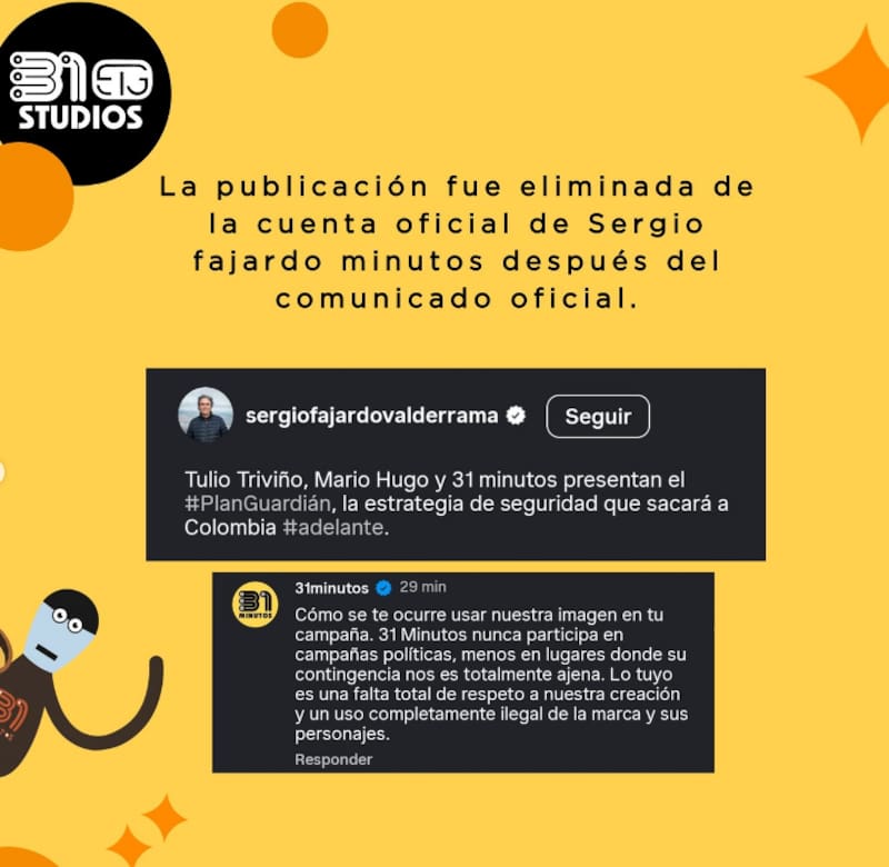 El programa se manifestó con fuerza al ver que un candidato colombiano estaba usando sus personajes para hacer campaña.
