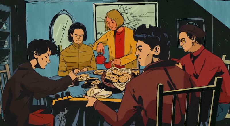 El recorrido del video llega hasta Londres, lugar en donde a mediados de 2025 fueron a grabar las canciones que conformarán este nuevo álbum, el primero desde 1999. En la caricatura se puede apreciar a los cuatro integrantes en la actualidad grabando música en donde The Beatles cambió el mundo. Por su puesto, un guiño a la icónica calle no puede faltar.