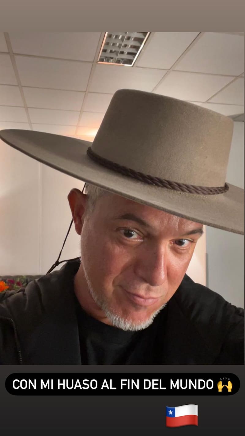 Una vez en tierras nacionales, el artista recibió un par de regalitos, como un gorro tradicional de huaso, el cual lo hizo muy feliz e incluso subió una foto en sus historias de Instagram.
