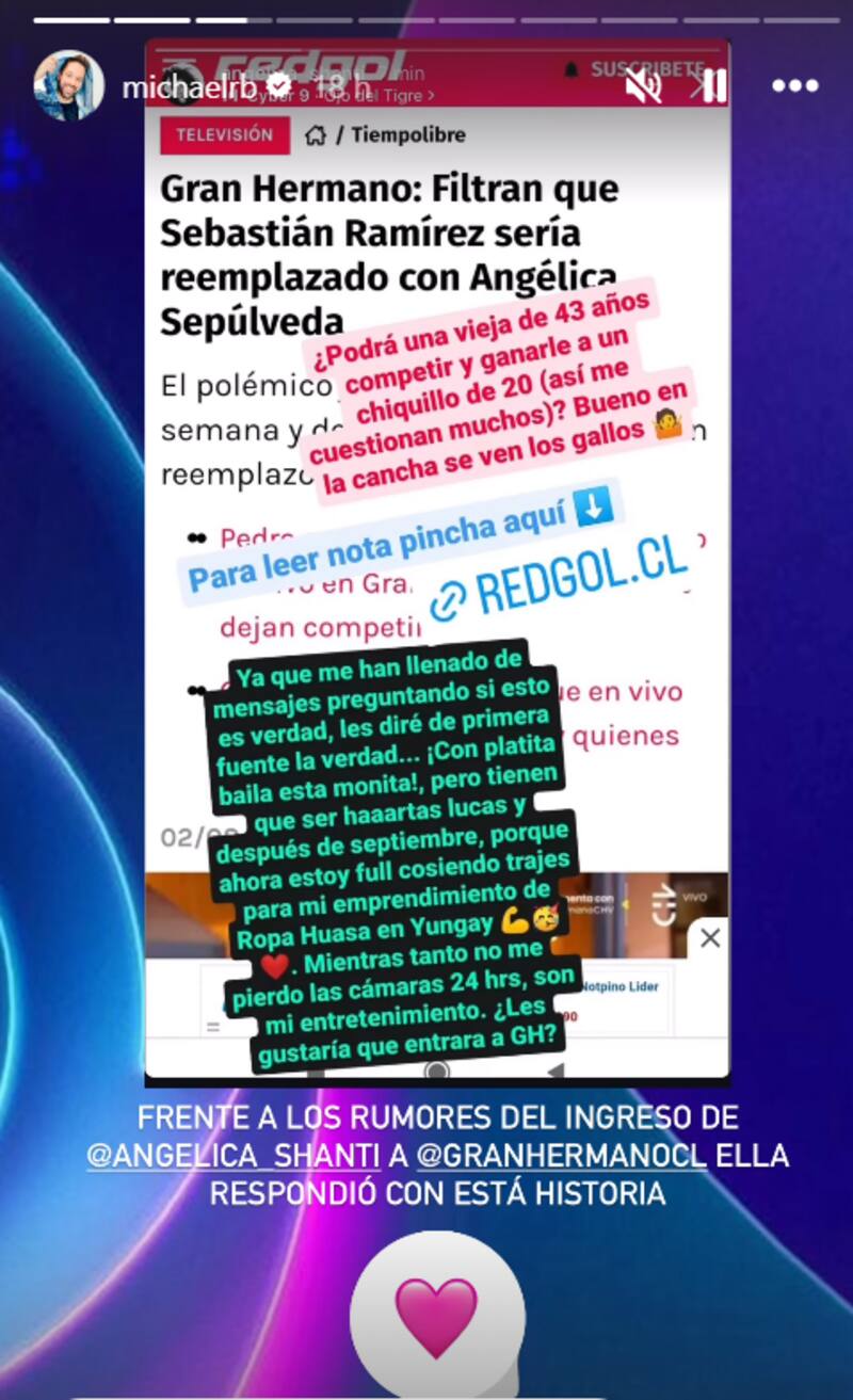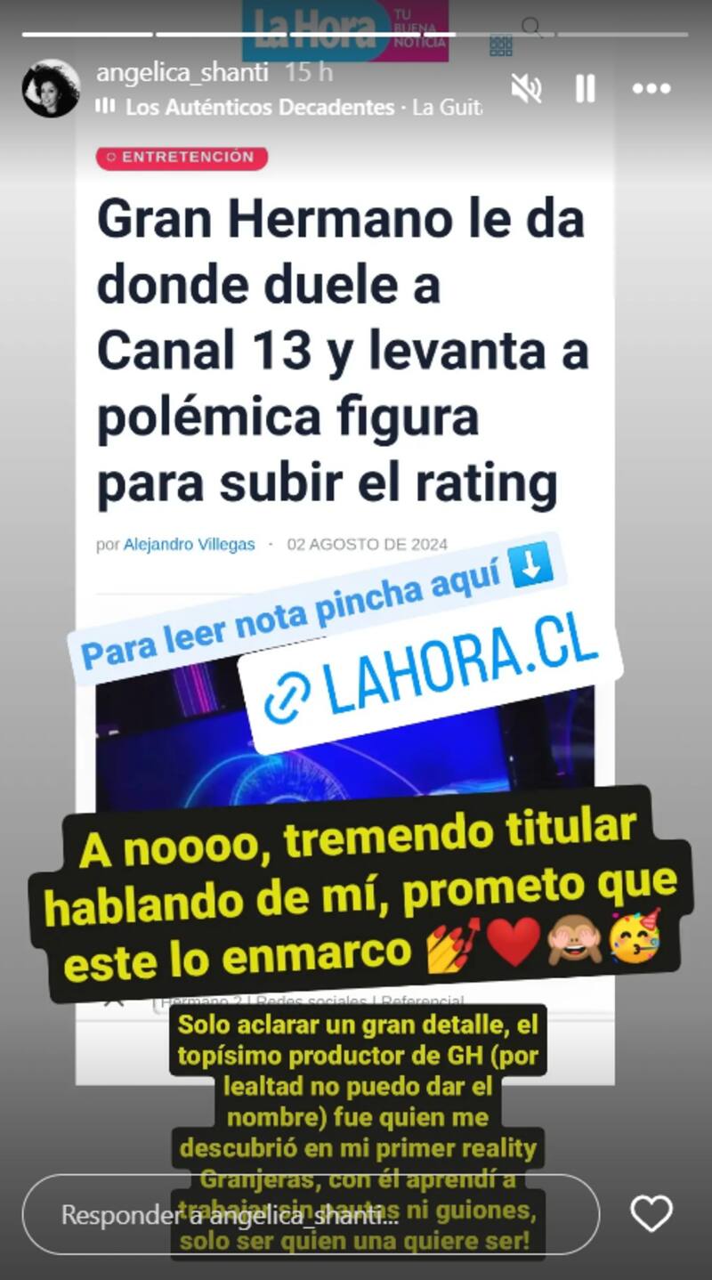Más tarde, en otra publicación, Angélica reconoció que conoce a uno de los productores que trabaja en Gran Hermano.