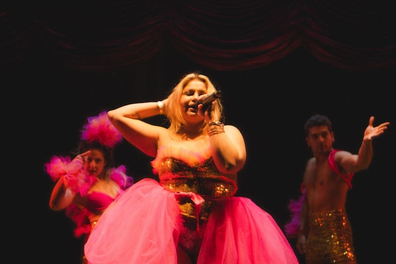 La figuración que tuvieron las actrices Patricia Irribarra y Adela Calderón en “Cabaret Bijoux”, que se hicieron conocidas como “las gordas de Vidiella”, es recordada en el elenco de “Boite Bijoux con la participación de la joven actriz, modelo, cantante y bailarina, también de talla grande, Javiera Wayne.