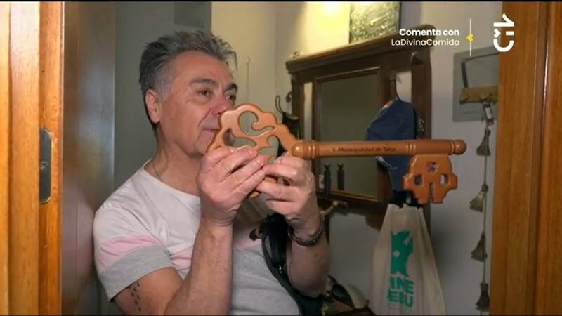 Pato mostró varias llamativas decoraciones que tenía en su casa como una espada y una gran llave de madera de Talca, donde es considerado “hijo ilustre” de la ciudad.