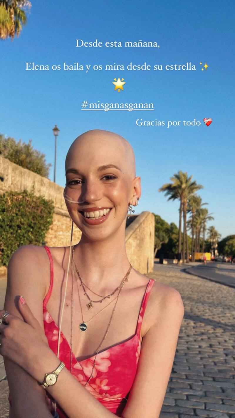 “Desde esta mañana, Elena os baila y os mira desde su estrella. Gracias por todo”, escribió la familia en una historia en su cuenta de Instagram, junto a una linda fotografía de ella.