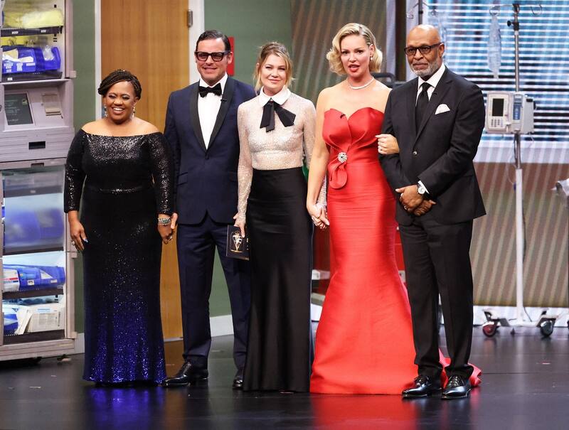 En el reencuentro estaban Ellen Pompeo (Meredith Grey), Justin Chambers (Alex Karev), James Pickens Jr. (Richard Webber) y Chandra Wilson (Miranda Bailey), quienes fueron presentadores en un set ambientado en una sala de hospital.