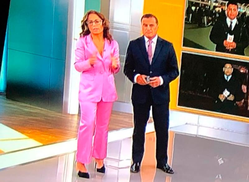 Fuertes críticas recibió la conductora de Tele13, Constanza Santa María, después que este miércoles condujera el espacio con un traje de sastre de color rosado.