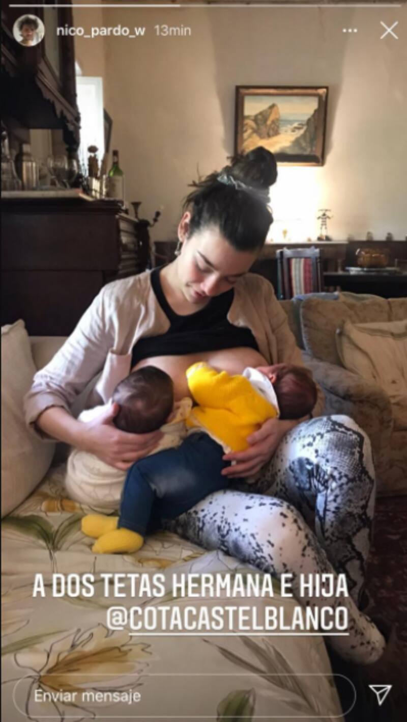 Los momentos junto a su hermanita y su hija los comparte en su Instagram, donde ahora subió un bella imagen amamantando a las dos bebes al mismo tiempo. La foto fue capturada por la pareja de Cota.