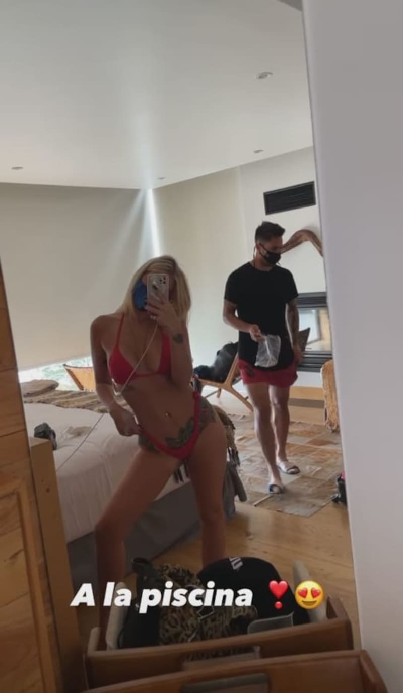 Allí, en sus stories, la modelo sacó aplausos con un coqueto bikini colorado que acompañó del texto: "A la piscina!".
